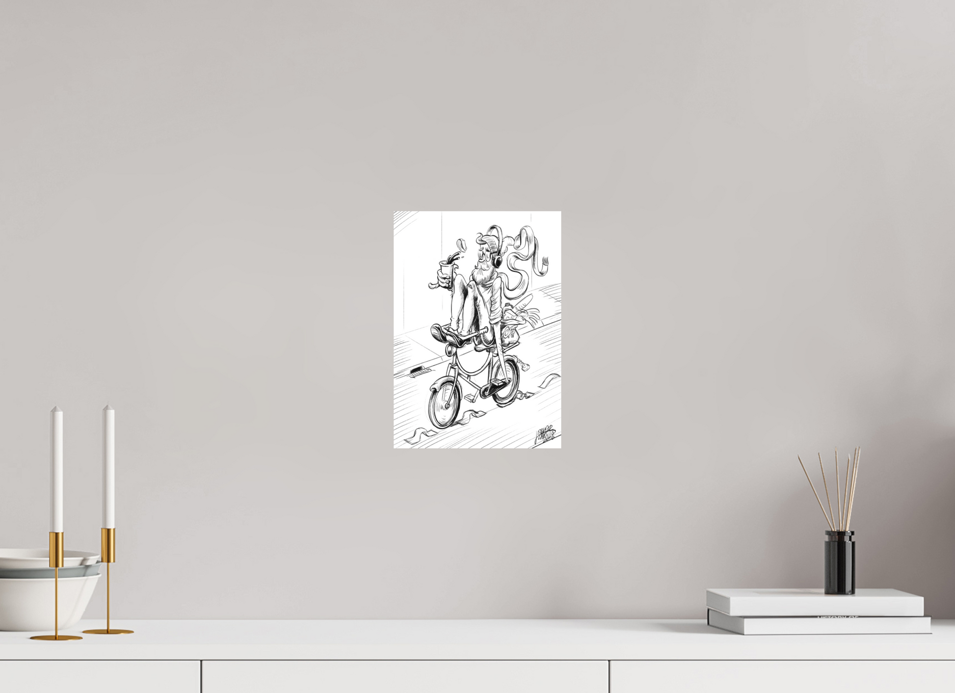 Black and white sketch by Lorenzo Milito portraying a typical multitasking Amsterdam hipster on a bicycle. Year 2016. Fine Art Print on Hahnemüle Paper available in 20 x 28 cm, 25 x 35 cm, 30 x 42 cm sizes.