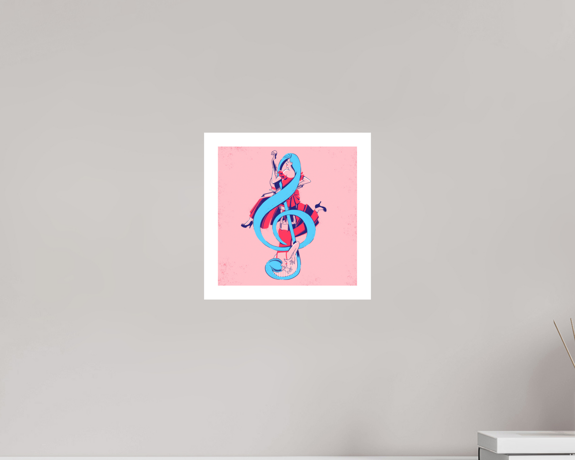 A surreal celebration of music and grace, this illustration intertwines two elegant figures and their instruments into the shape of a giant treble clef. Perfect for music lovers, art collectors, or anyone drawn to bold, feminine energy with a twist of surreal charm.